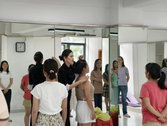 亲子体能游戏环节在舞蹈室欢乐上演,亲子间的协作默契在游戏中逐步增进。随后,祈福社区居委会舞蹈室内,妈妈们迎来专属“她”时光,通过专业形体课重塑优雅气质。在二楼会议室的亲子手工课堂,爸爸们收获与孩子温馨相伴的美好时刻。